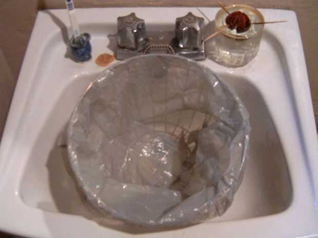 Normalmente utilizo la papelera del baño. Poner en el fregadero ayuda actuando no sólo como un segundo receptor de pelo, pero también pone el recipiente a una altura más práctico.