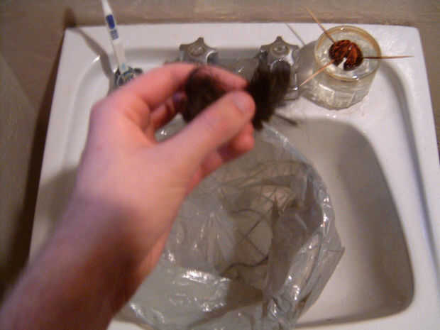 En este punto usted debe tener una mata de pelo en la mano. A menos que usted planea utilizarlo para algo, es hora de tirarla en la basura.