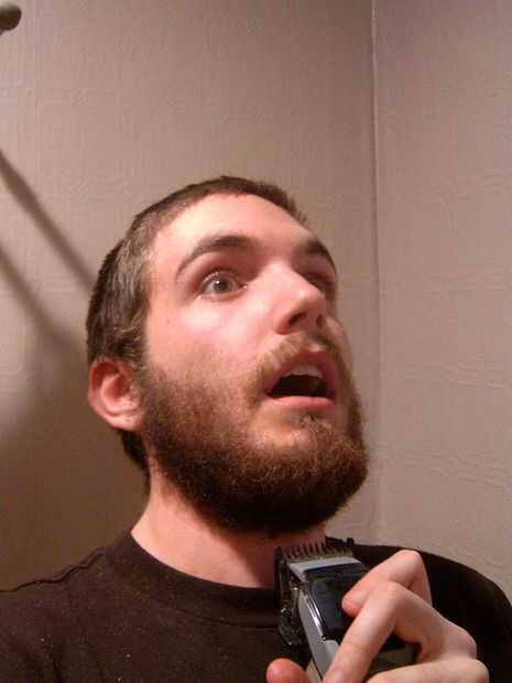 Sacar el timbre eléctrico, lubríquela y encenderlo. No te asustes aunque. Es más miedo que estás de él. Sosténgala con confianza y recortar una tira debajo de la barbilla. Disfruta de este momento, pues es la primera y la última oportunidad de nunca ser tomado en serio en un show de Motorhead, al menos hasta que notan los brazos flacos, 10 años - viejo muchacho.