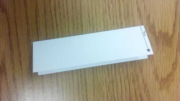 2. Haga un corte en la parte superior del borde doblado aproximadamente 1/4 pulgada de la parte superior de la tarjeta, corte hacia el extremo abierto y dejar de pulgada ⅛ lejos el extremo abierto.