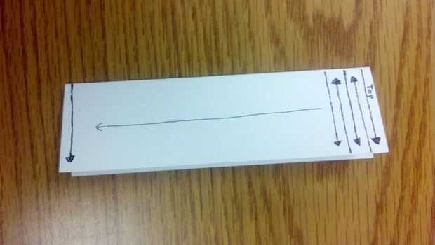 5. Asegúrese de que terminas con el mismo corte que empezaste. Usted quiere un corte que comienza desde el lado doblado y se extiende hacia el lado abierto.