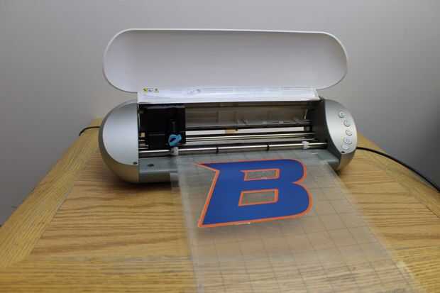 El retrato de la silueta puede ser utilizado para cortar alrededor de diseños impresos, como este logo con un borde naranja. Todo lo que necesita es la herramienta de seguimiento y algunos alineación cuidadosa.