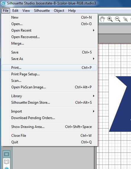 • En el software de silueta seleccione Archivo → Imprimir para imprimir su insignia.