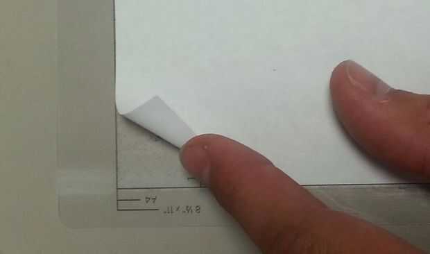 • Después de la impresión aplicar hoja del adhesivo, forro, alineando la parte superior izquierda de la hoja para las marcas.