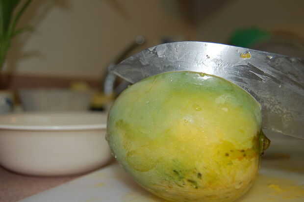 aprender cómo cortar un mango correctamente. Sé que suena tonto, pero esta fruta no es tan recta hacia adelante como usted pensaría hacer.Revisa mi sitio web! http://nukem384.blogspot.com