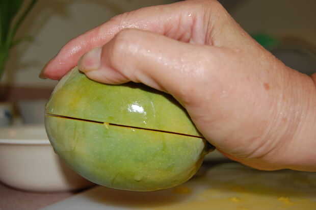 Cómo cortar un mango y comer en 1 minuto (2 / 5 paso)