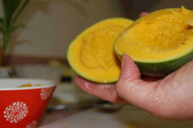aprender cómo cortar un mango correctamente. Sé que suena tonto, pero esta fruta no es tan recta hacia adelante como usted pensaría hacer.Revisa mi sitio web! http://nukem384.blogspot.com