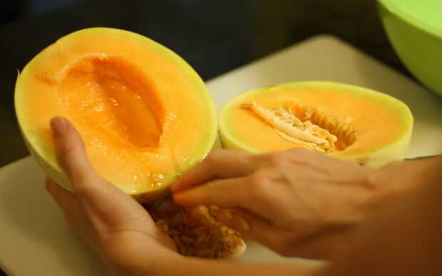 Los dedos están mejor adaptados para raspar de la semillas: consiguen muy bien en todos los rincones y grietas, y puede separar las semillas sin escopleando con gubia el melón maduro suave.