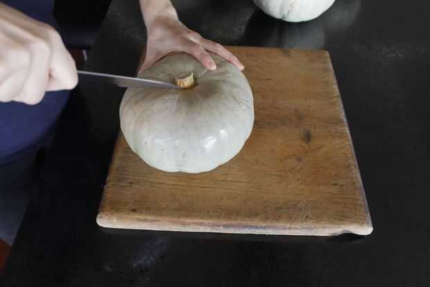 Con el mismo método, puede hornear natillas u otro pudding (en una calabaza).Paso 1: Hornear la calabaza 1 calabaza pequeña sobre 1 kg1/2 cucharadita de canela en polvo y una pizca o dosCortar la parte superior de la calabaza como se muestra y limpia
