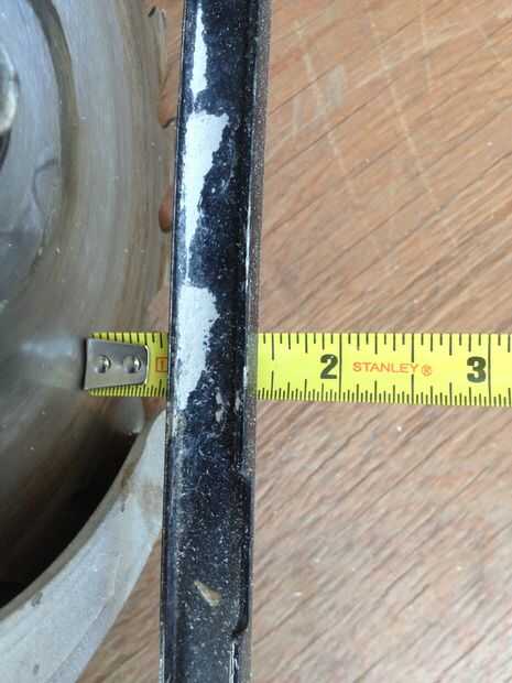 Mida la distancia desde la hoja al borde de la zapata de sierras. El zapato es la pieza inferior de metal que se basa en la madera al cortar. medir el lado más corto de la sierra para una medición más manejable más pequeñas. Mira la foto de arriba para ver lo que esta medida debe buscar como parece.