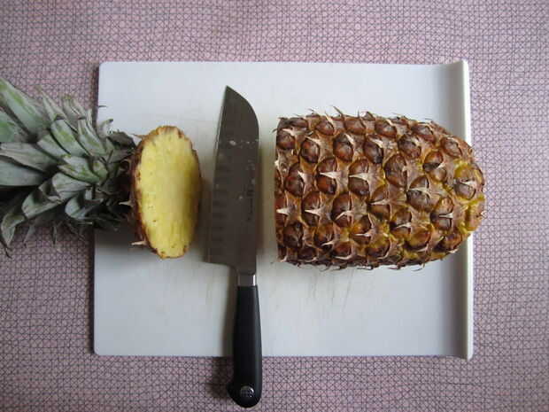 Hay muchas maneras de cortar una sandía, pero prefiero hacer mi manera que es más eficiente, menos desperdicio y al mismo tiempo este método también elimina la mayoría de las semillas de la carne.Lo que necesita es una tabla de cortar, un cuchillo, u