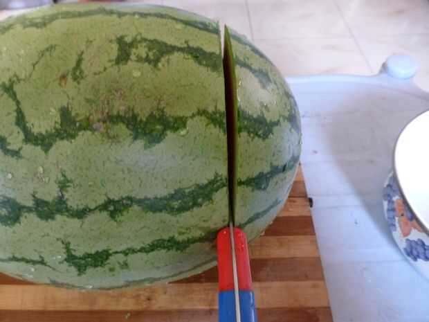Cómo cortar una sandía - mi manera (1 / 5 paso)