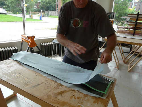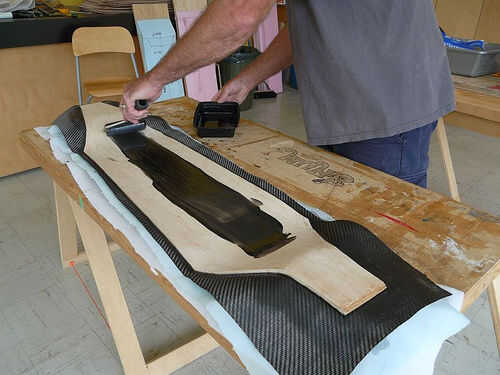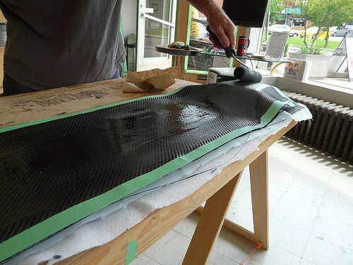 Coloque la segunda pieza de tela de carbono sobre la cubierta húmeda.