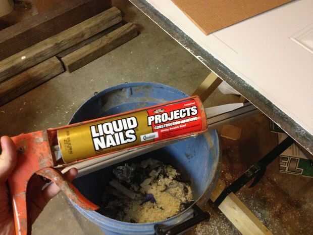 Para volver a instalar el riel inferior, usted necesita usar un adhesivo libre de solvente para evitar de comer, la espuma dentro de la puerta. Sólo mirar la etiqueta y ver si es seguro para la espuma. Aplicar liberalmente el adhesivo en los cuatro lados de la cavidad de la puerta (Foto 17). Inserte el travesaño inferior hasta que esté completamente asentado contra la espuma. Utilice un mazo de goma (o martillo envuelto en un trapo) lentamente doblar el acero debajo de la puerta (Foto 18). Una vez que el acero se dobla bajo el riel inferior, voltea la puerta y repita.