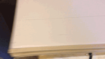Algo a tener en cuenta, especialmente si su puerta es preacabado, es una manera de proteger la puerta de arañazos al empujar la sierra a través de la puerta. Utilice cinta de enmascarar o tener un ayudante vacío las virutas como corte para evitar virutas de queden atrapados entre la base de la sierra y la puerta. Acabó con un rasguño bastante largo en ambos lados de la puerta, pero esta puerta necesita ser pintado de todas formas.