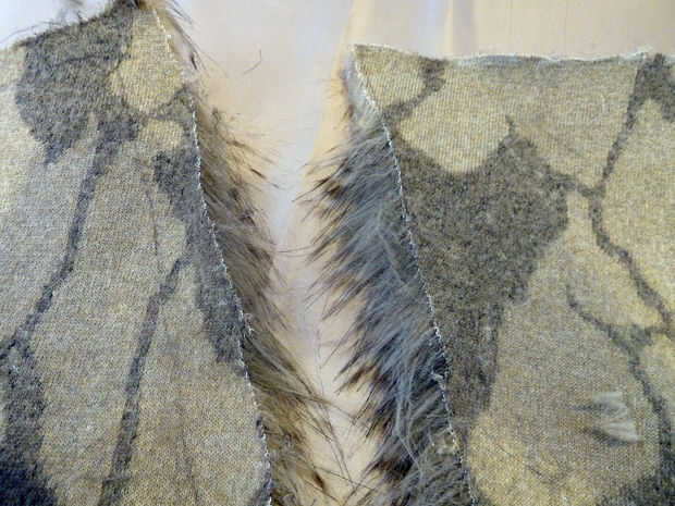 En su lugar, utilice una hoja de afeitar o un cuchillo x-acto para cortar solo el forro de la piel. Así, todos los pelos permanecer intactos, y el respaldo se separe limpiamente. Usted puede conseguir los pocos pelos que salgan, pero es mucho mejor que el montón de piel que tendría en sus manos si se le corta a través de él con unas tijeras.