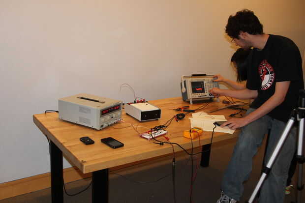 Se puede utilizar un osciloscopio. Si nunca has usado uno antes, ver /.