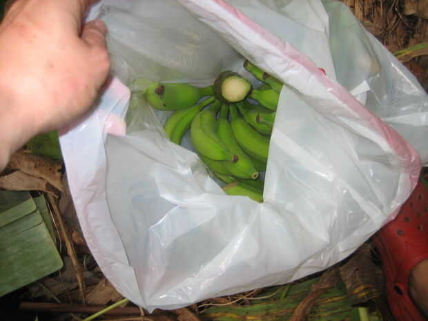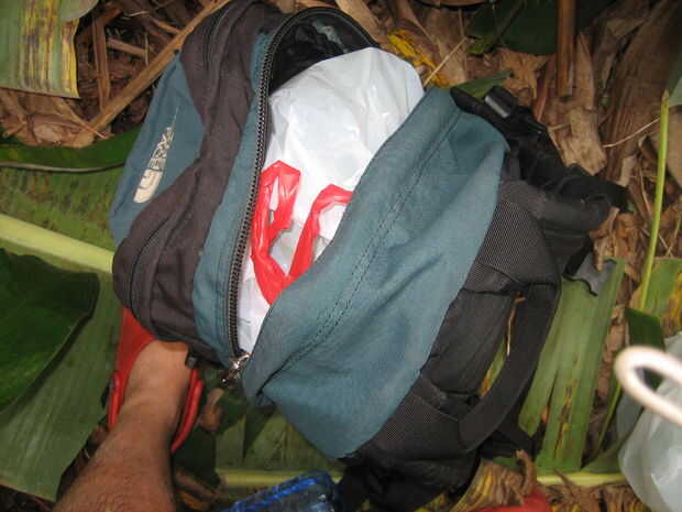 Como lo dije, que sap realmente las manchas. Así que empaque los plátanos en una bolsa de plástico dentro de la mochila.