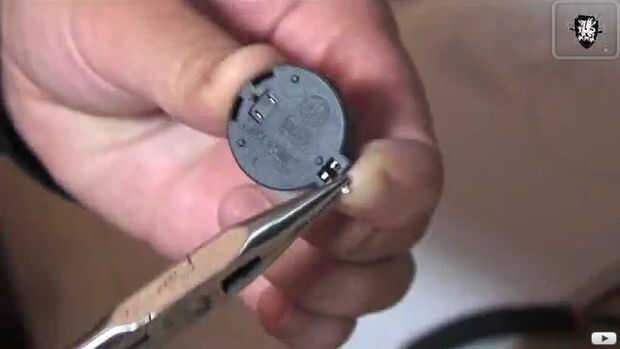 Romper los cables de soporte de la batería por agarrar con pinzas y doblándolas hacia adelante y hacia atrás hasta que se rompen (situado generalmente en la parte inferior de los soportes de batería)