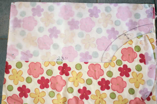 Liberar el papel de patrón. Revelar la pieza delantal. Ahora debe tener tres piezas de corte de la tela: una carcasa izquierda, una carcasa derecha y la pieza delantal grande.