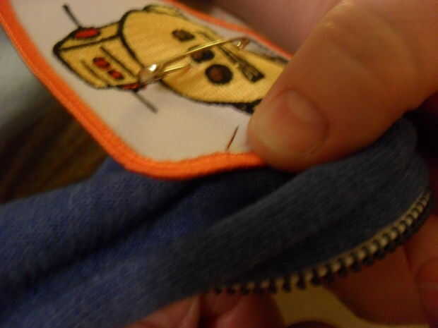 Para empezar, decida donde desea su parche. Pongo minas en la parte superior izquierda en la parte delantera de mi chaqueta. Después de que usted decida donde usted lo desee, ponga su pin de seguridad a través de la revisión y la camisa o chaqueta. Empezar por enhebrar su aguja. Después de eso, meter la aguja a través de la camisa y el parche, este es el comienzo de la primera puntada. Después de hacerlo, tire del hilo y la aguja hasta que casi no hay hilo en el otro lado. Un nudo en el lado opuesto del parche. El nudo impide que el hilo que sale. Ahora, meter la aguja por el lado con el parche hacia arriba unos 2-3 milímetro de la primera de ellas. Tire del hilo hasta que esté firme. Repita este proceso alrededor del parche todo, asegurándose de conseguir tan cerca y solo archivo como sea posible.