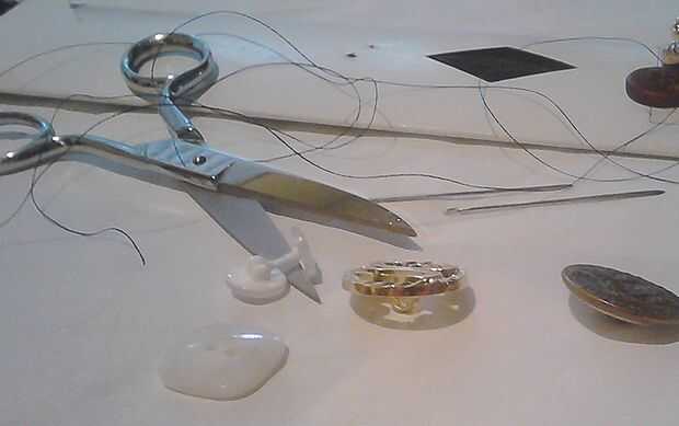 1) hilo ojales (tiendas profesionales normalmente usan Silamide tipo un hilo vendido en pequeño de la yarda 40 tarjetas en cualquier tienda de abalorios o $1 en ebay/Etsy). Banco los 5 colores básicos: blanco, tan, marrón, gris y negro que cubre prácticamente todo lo que viene.