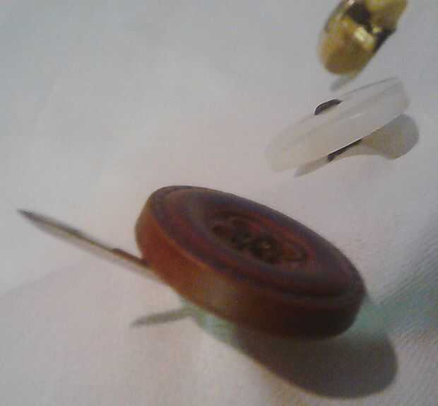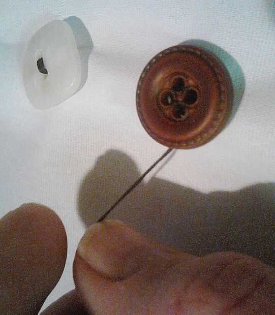 Esta parte siguiente es las alcantarillas hogar punto tienden a perderse o desarrollar soluciones temporales de trabajo loco (como con los partidos). Sólo apuñalar frente a la parte posterior de la tela otra vez y pase el hilo a través de. Esta vez en lugar de apuñalar a uno de los ojales, tomar los hilos firmemente entre su abrigo de los dedos el hilo alrededor en un círculo firmemente debajo del botón. Esto crea lo que se conoce en la industria como el tallo del botón y deje que el botón flotar encima de la tela sin ningún esfuerzo aparente. La madre debe ser lo suficientemente apretada como para asegurar el botón por lo que flota, pero no envuelto firmemente que causa el hilo fruncir. Si te equivocas hasta envolver el hilo demasiado apretado o demasiado flojo, simplemente relájese y vuelva a enrollar.