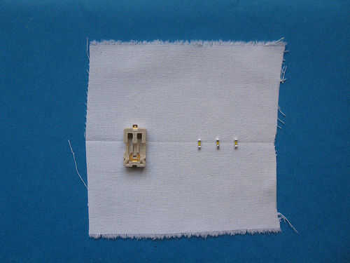 Antes de empezar a coser, es importante saber que los componentes de tu circuito van a vivir. En este ejemplo, sólo estamos haciendo un parche de prueba simple, pero si estás cosiendo su StitchLits en una pieza de ropa, puede que necesite pensar más cuidadosamente en donde colocarás tu LED y la batería.