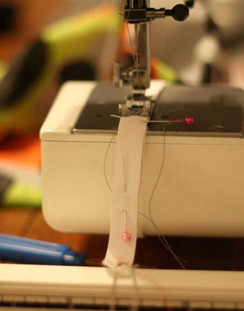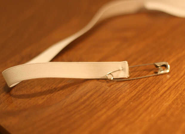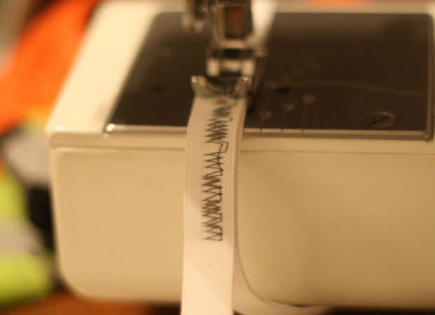Cortar un trozo de 1 / 2 pulgadas de elástico lo suficiente como para caber alrededor de la cintura de la persona y otro tres o cuatro pulgadas. Marque la medida de la cintura real sobre el elástico con un rotulador para saber dónde coser cuando esté listo. Uno de los extremos del elástico para un gran alfiler de gancho y colócala en la pretina teniendo cuidado de no retorcerlo como vas alrededor de. Manojo de los pantalones para arriba una vez que haz ambos extremos hacia fuera, superposición el elástico a la marca sharpie y cose el elástico con una puntada de zig-zag amplio de seguridad. Recorte el elástico extra y dejar el elástico ir hacia arriba en la cintura. Luego coser a través de la abertura para asegurarlo todo en su interior.