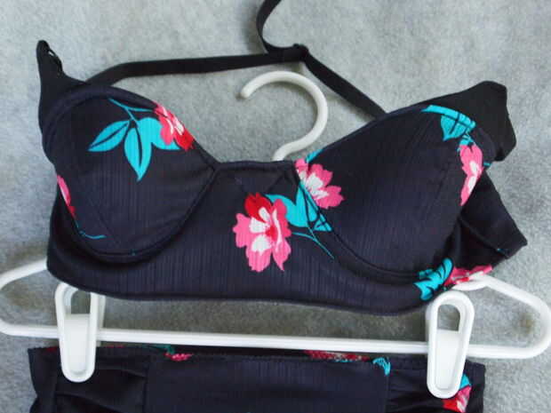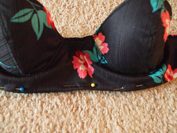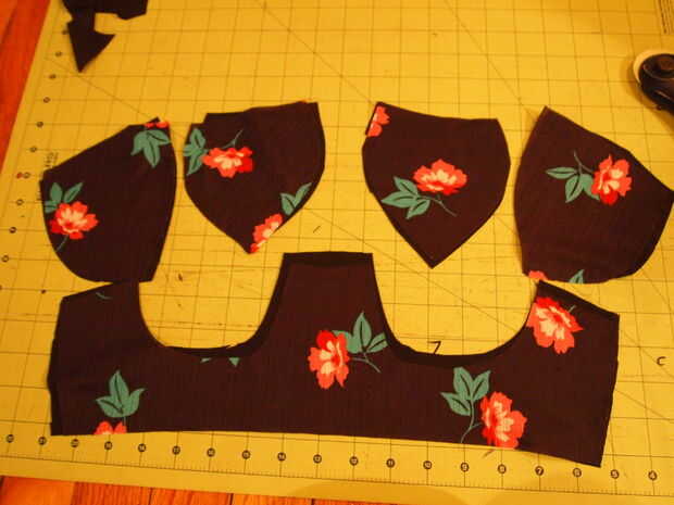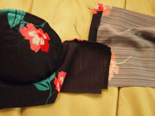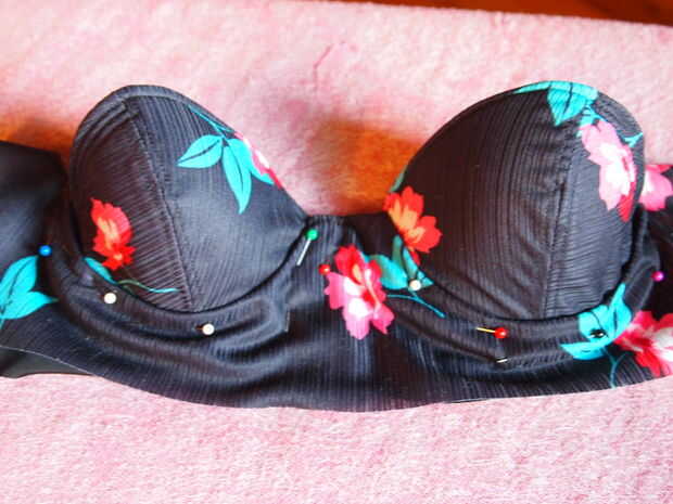 Last thing to do is make a top! No puedo explicar este paso de tanta profundidad como los otros pasos - pero si usted tiene preguntas, por favor pregunte. Hice este más por capricho que algo por lo que el patrón no ha sido había probado muchas veces. Aquí está lo que hice y cómo puede utilizarlo. Tomé un sujetador viejo que me queda bien y planea utilizar como base para la parte superior del bikini. Quería mucha estabilidad. Entonces yo cortar las piezas de patrón de sujetador - usted necesita hacer lo mismo. Los dos taza de necesidad de piezas cosidas a lo largo del lado que tiene las flechas. Una vez cosido, voltearla sobre (derecha arriba) y coser una costura a lo largo de la parte superior de la misma (ver imagen). Una vez hecho esto, esto será formado sobre el sujetador, puesto en y cosido en. Nota: este no es el más profesional de maneras de crear un top de bikini - aunque me gusta cómo resultó. Yo estaba impaciente y podría haber hecho algo mejor, alineado y desde cero. Pero de todos modos, es básicamente lo que hice. Luego cosí en la pieza principal que va por debajo de las copas del sujetador. Después de eso, yo corte dos tiras de la pieza posterior - cerca de cuatro pulgadas de ancho.