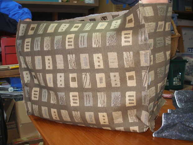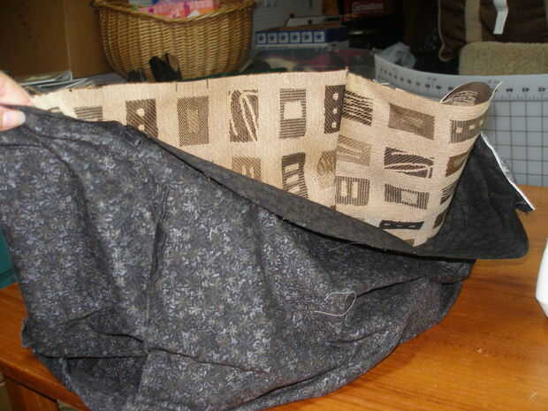 Una vez que tengas estos cosidos juntos, girar a la derecha exterior hacia fuera y coloque dentro de la funda por lo que los lados del derecho juntos. Este paso es algo confuso y arruinara todo el tiempo. Básicamente, usted debe ver el interior de ambos tejidos, no el lado de las telas que se van a mostrar. También, la imagen debe dar una idea.