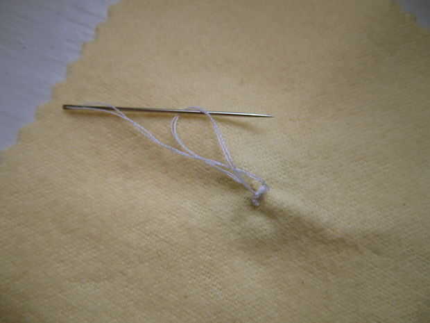 • después de enrollar, llevar la aguja al revés de la tela y nudos bien pequeñas puntadas en la tela y luego anudar.