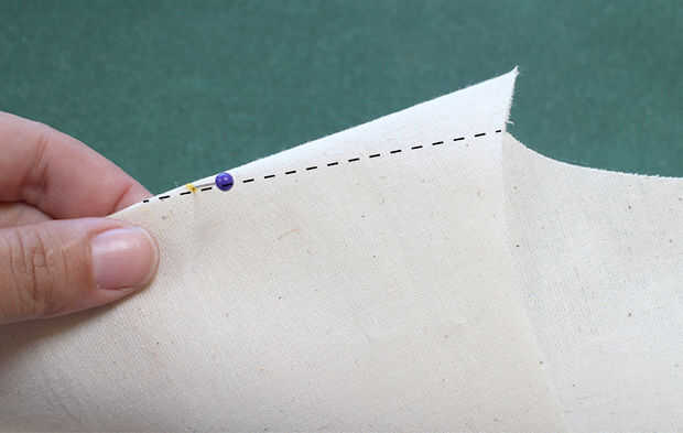 A partir de las muescas y coser una línea recta a 1/2" más allá de la marca de agujero de sacador.