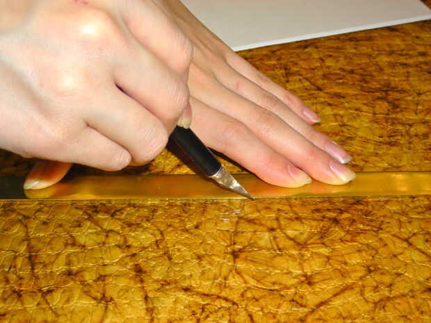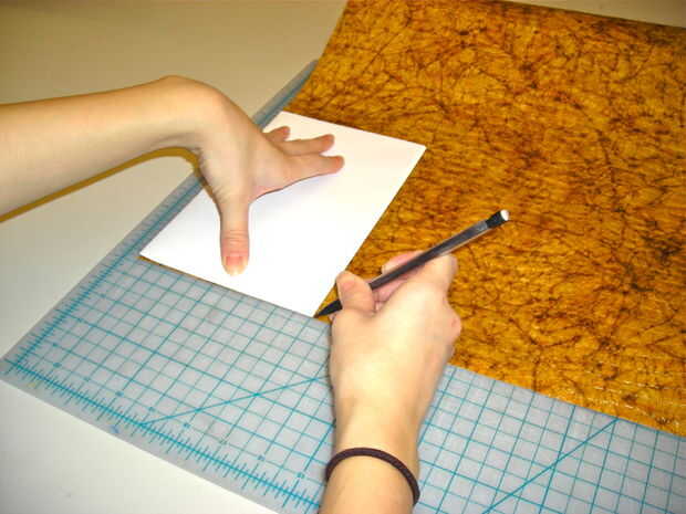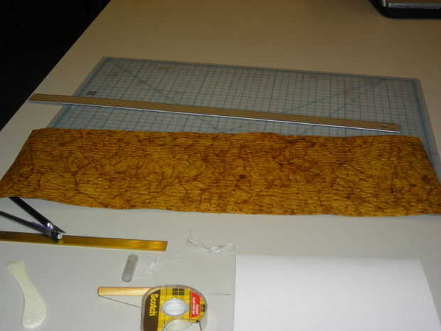 Marca su papel de cubierta para ser 4 x la longitud de la sección, además de una pulgada extra a la cinta junto. Cortar con el x-acto y un borde recto; dejar a un lado para más tarde.