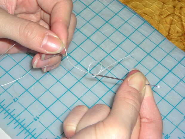 Nudo doble para asegurarse su costura no venga a deshacer! Corte el exceso de cordel.