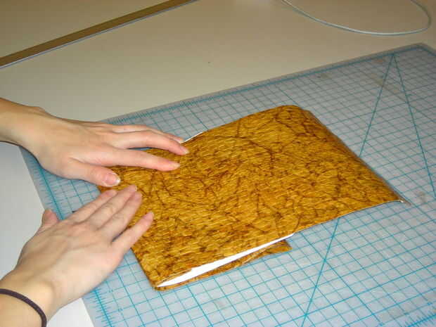 A continuación doblar la última parte de su cubierta hacia atrás sobre sí mismo para coincidir con el pliegue donde su aleta cosiendo y extra es. Aplane el pliegue. Colocar esta última parte de la cubierta a la solapa extra.