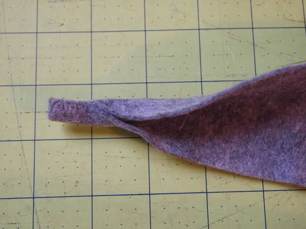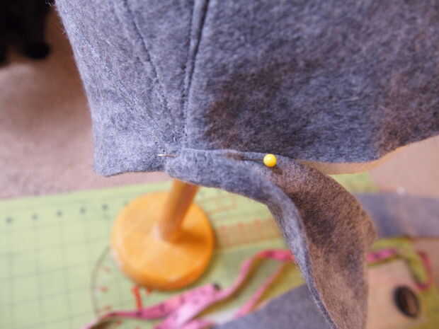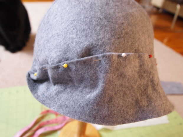 El extremo del borde no será totalmente seguro abajo. Así puede mover alrededor de cómo os guste y si lo desea, hacen una o dos puntadas pequeñas para asegurar en el sombrero. Creo que se ve mejor así - de lo contrario puede pegarse hacia fuera torpe.