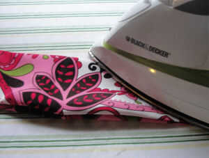 Vuelta correa bastante lateral hacia fuera a través de la abertura en el otro extremo pequeño. Prensa plana y agradable. Doblar los bordes donde la abertura está en y puntada cerrada. Los lazos de la correa en la parte posterior.