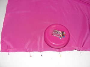 Cortar el rectángulo para su vestido según sus medidas. En primer lugar, dobladillar la parte superior del vestido a lo ancho. Doble bajo 1/2" para el lado feo de la tela. Doblar otra vez 1/2". PIN, planchar y coserlo.