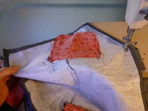 El protocolo general: siempre empiezan y terminan con un pespuntes y coser 0.5" a 0,625" en desde el borde de la tela. Que tendrás que ejercer buen juicio sobre esto, si eres como yo y cosas está empezando a no línea perfectamente. Por suerte el margen de costura debe cuidar cualquier tamaño une mal. Sólo aproximadamente Asegúrese de que está siendo symmertrical y tienen líneas suaves... Comienzan en los paneles frontales. Desde la esquina exterior de la parte inferior y coser hacia adentro a lo largo de la parte inferior de un panel, luego hasta el centro (donde los botones de los agujeros se van) y continuar alrededor del cuello, por el otro lado y en la parte inferior. No suben de los rincones de exterior lejano fondo del frente! También coser los orificios del brazo juntos (dos media lunas grandes, si usted pone todo hacia fuera plana.) y luego la parte inferior de la espalda así (pero * sólo * la parte inferior). Coser una V invertida en el centro de la parte inferior de la espalda, para verse bien. Cuando haya terminado, saque los pernos, recortar las costuras y corte muescas en el interior y fuera de las curvas para que te sientan mejor cuando se da vuelta adentro hacia fuera.