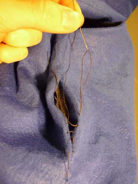 Esta fue una de las partes más difíciles. Mientras que el chaleco es de adentro hacia afuera (con el forro hacia fuera) {editar: adentro hacia fuera, como normal, ropa al revés de cómo usted usa normalmente. Su lado derecho hacia fuera ahora, en el sentido de la costura, después de dar vuelta en paso 21. (gracias a BeanGolem)}, se dará cuenta de que las últimas asperezas tienen el frente externo y la parte posterior de Satén uno frente al otro. Coser estos dos juntos, pero no coser el forro con ellos. Tratar de coser hacia arriba más allá de la costura sobre el forro, por lo que es coser juntos los dos dentro de los trazadores de líneas y creando un tubo. Repita para el otro lado. Cuando le da la vuelta el chaleco de la derecha-hacia fuera otra vez, debe tener una buena costura en el lado y un bolsillo abierto en el centro de la funda, en el interior de esa costura. Coser este agujero con un "slipstitch", con la mano.