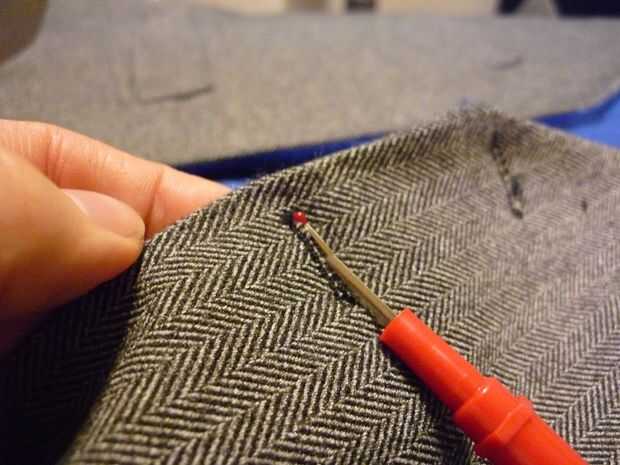 Coser la hebilla de la correa, te recomiendo a mano para no romper la aguja cerca de la hebilla del metal. Pase la hebilla en el extremo de la correa derecha, doblar y coser en. Puede que desee mover, si sabe que necesitará más acción de ceñir. Como alternativa, pin en probarse el chaleco y luego determinar ahora a coser en. ¿También, ésas las costuras que devengarán, parcialmente en de los bordes de la funda? Coserlos más bien, a través de todas las capas de tela. Ir sobre un par de veces, ya que existe mucha tensión allí.   Marque los lugares donde botones y orificios de la funda. Fui primero con agujeros. Si su máquina de coser hace agujeros, genial! Si no, hacer una búsqueda rápida de google sobre cómo hacerlo a mano y utilizar el artilugio viejo loco que reemplaza el zapato en viejas máquinas de coser que se desplaza a la tela para hacer un agujero.