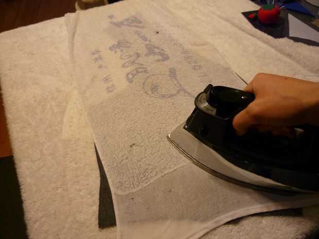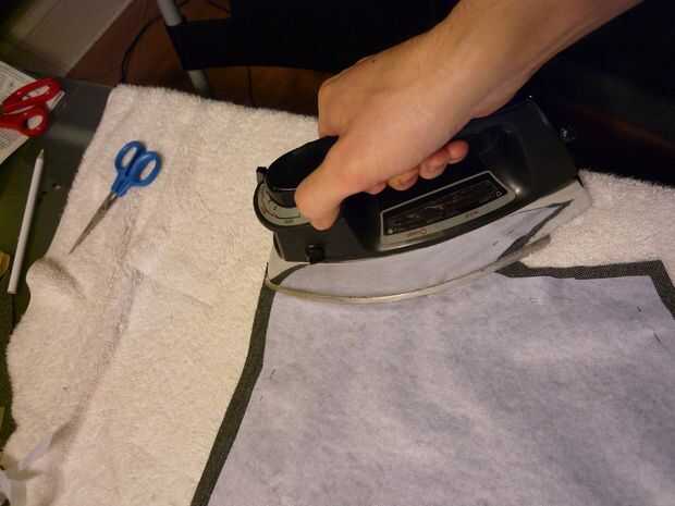 Ahora, poner el paño húmedo en la entretela y ver la subida de vapor como hierro en. Dale la vuelta a la "derecha" y continuar, hasta que la entretela quede correctamente colocado (ver el enlace en los bordes).