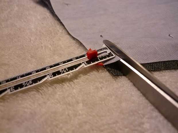 Luego, calentar la plancha mientras que moje un trapo, y luego "Hilvanar el vapor" los bordes de la entretela. (No tenía ni idea lo que era. Sólo ligeramente Presione la plancha en el borde, para aproximadamente un segundo, luego repetir bajando todos los bordes) {editar: no se debe confundir con hilvanes en el sentido de coser}. Empuje los pernos hacia fuera con la punta de la plancha. {Editar: realmente no sé por qué, dijo. Tal vez en caso son caliente?}