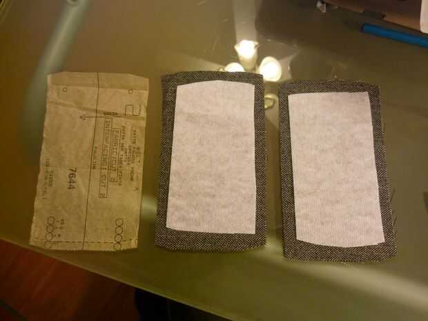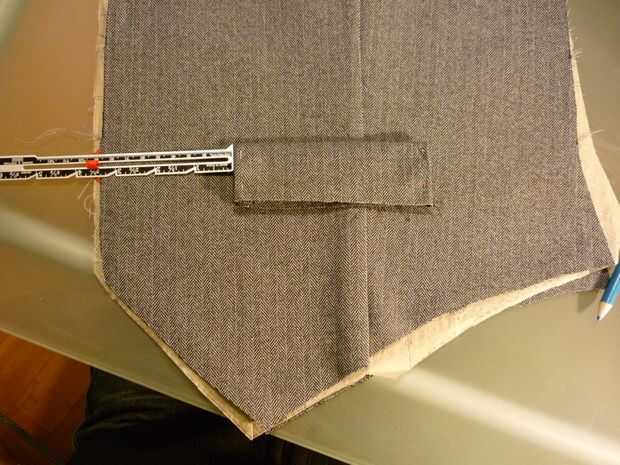Si usted no desea que los bolsillos, solo pase... Esto me llevaron más tiempo, sobre todo porque me decidí a reverso-Ingeniero el tipo de bolsa que quería. Estoy seguro de que está en línea en alguna parte aunque...   Cortar una roncha (un patrón, o simplemente... cortar un rectángulo.) y también cortar entretela para que él (para darle cierto cuerpo), un poco más pequeño. Desea que las ronchas que aproximadamente 1.25" alto cuando está cosidos en y sin embargo amplia (mina son 5" ish), tan sólo tiene que añadir 1" a cada dimensión para dar suficiente espacio para la costura hacia arriba. (Yo tenía 6" de ancho por 3.5" de alto). Asegúrese de que la interfaz es más como el tamaño final, porque doblándola dificulta la cosa.   Entonces, plancha la entretela en {Editar: engañado aquí y solo planchado recto sin todo el foreplay descrito en el paso 4. Manera más rápida, es tan pequeño un área.} y luego doblar la roncha por la mitad y el borde de hierro. Doblez en los bordes cortos en un buen lugar en el patrón y dobla a la mitad, estilo de perro caliente, la roncha y prender los bordes en lugar. Ahora la única parte inacabada debe ser la parte inferior. Tenga cuidado de emparejar el patrón de la tela...   Ahora coloque su ribete donde desea que un bolsillo en el chaleco.