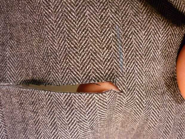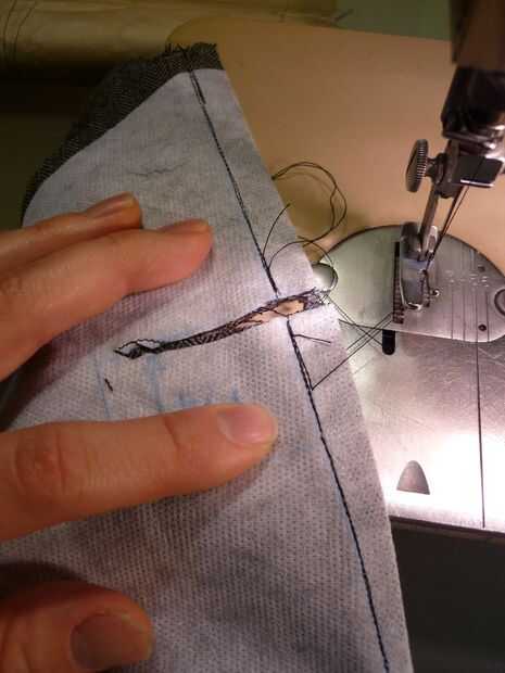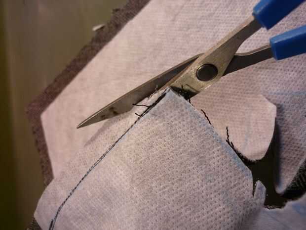 Marcar una línea de aproximadamente 0,25" desde el fondo de la roncha y hacer una pequeña incisión en el dart (si el bolsillo lo cruza). Luego, regresar en la máquina de coser y fortalecer el dardo cerca del corte costura hacia atrás y de cuarto un poco sobre los extremos cerca del agujero. Recortar el dardo, como se muestra en las fotos, por lo que hay menos merodear alrededor de plegar y coser la tela. Ahora, corte a través de un agujero de ocultación, con la última 0,25" cortar hacia abajo en 45 º para llegar a las esquinas inferiores (Recuerde, establecimos la línea 0,25" desde la parte inferior. Asegúrese de que las dos esquinas están donde quiera las esquinas de la roncha que.