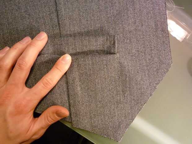 Con la vertical del chaleco y revés frente a usted, usted debe tener básicamente el forro de bolsillo boca abajo, con la parte inferior alineada con la parte inferior de la roncha.