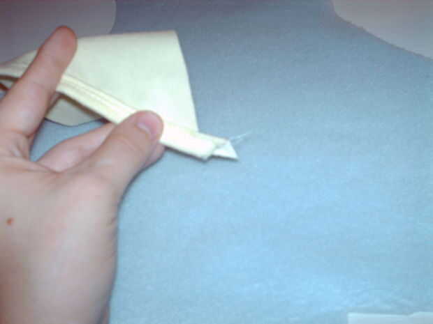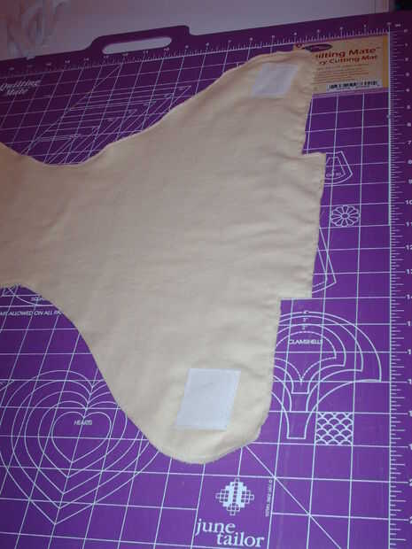6. Seleccione una capa de tejido que se convertirá en la capa más interna, más cercana a la piel del bebé. Coser el lado del gancho en el interior de las alas.