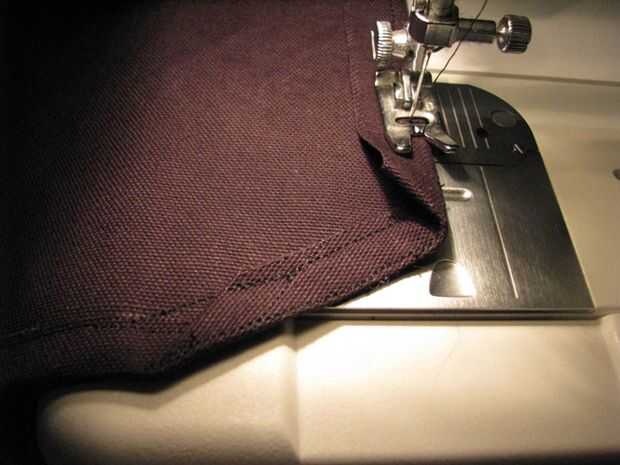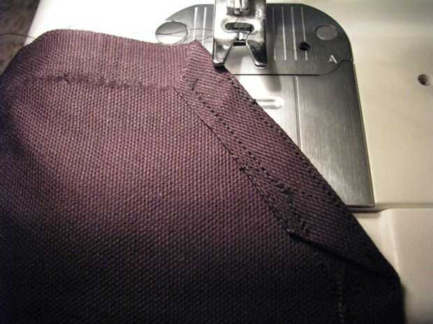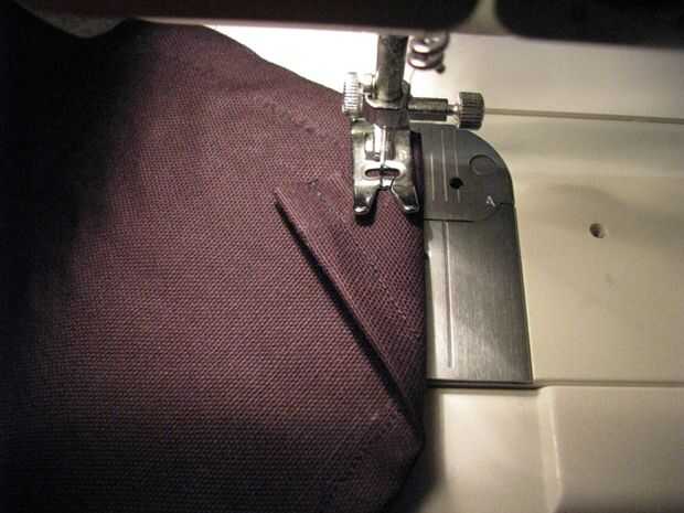 5) dobladillo en la parte delantera de la aleta, costura doble (otra vez) para el refuerzo. (Esto es el borde previamente no encerrado). (Foto 3)