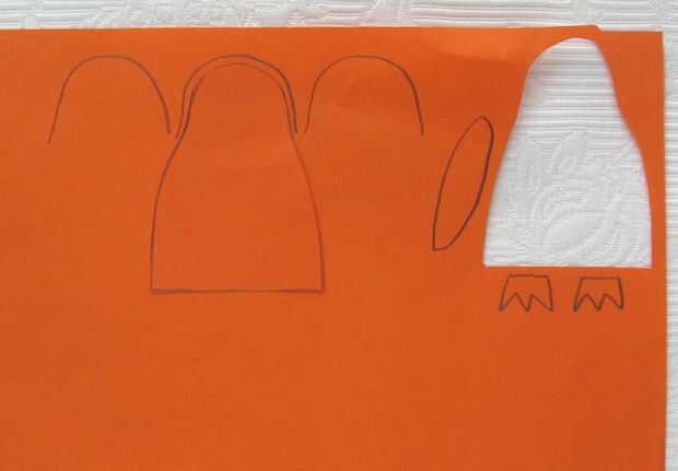 10. Corte todas estas formas hacia fuera. Excepto unos pocos de los pequeños triángulos obtienes de cortar los pies. Uno de ellos podría ser del tamaño adecuado para un pico.